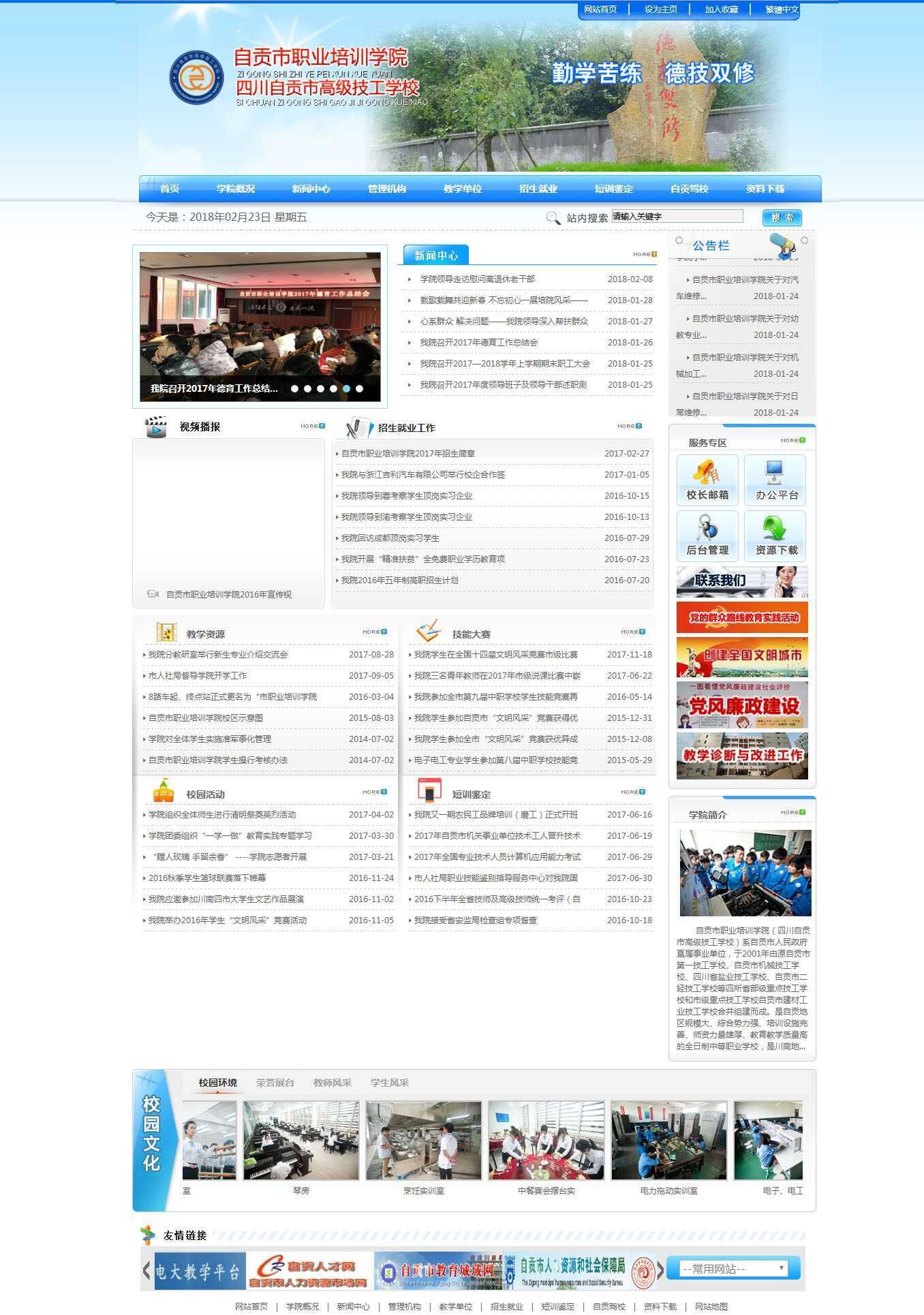 自贡市职业培训学院(四川自贡市高级技工学校,自贡市农民工培训学院)系自贡市人民政府直属事业单位,是自贡地区规模大、综合势力强、培训设施完善、师资力量雄厚、教育教学质量高的全日制职业学院,是川南地区唯一的高级技工学校和高技能人才培养基地。